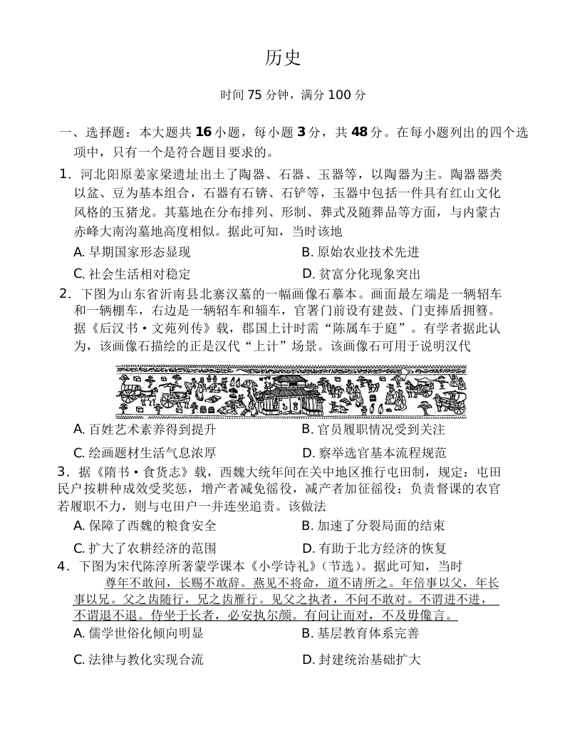 百师联盟2026届高三二轮复习联考(一)历史.docx