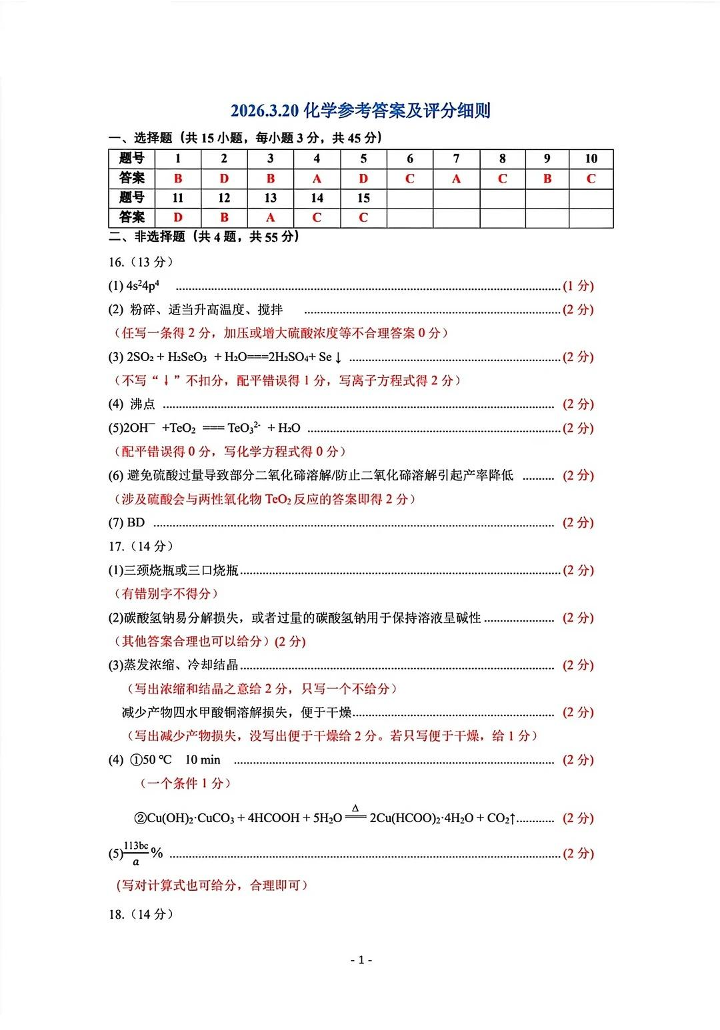 赤峰市2026年高三3·20模拟测试 化学答案.pdf