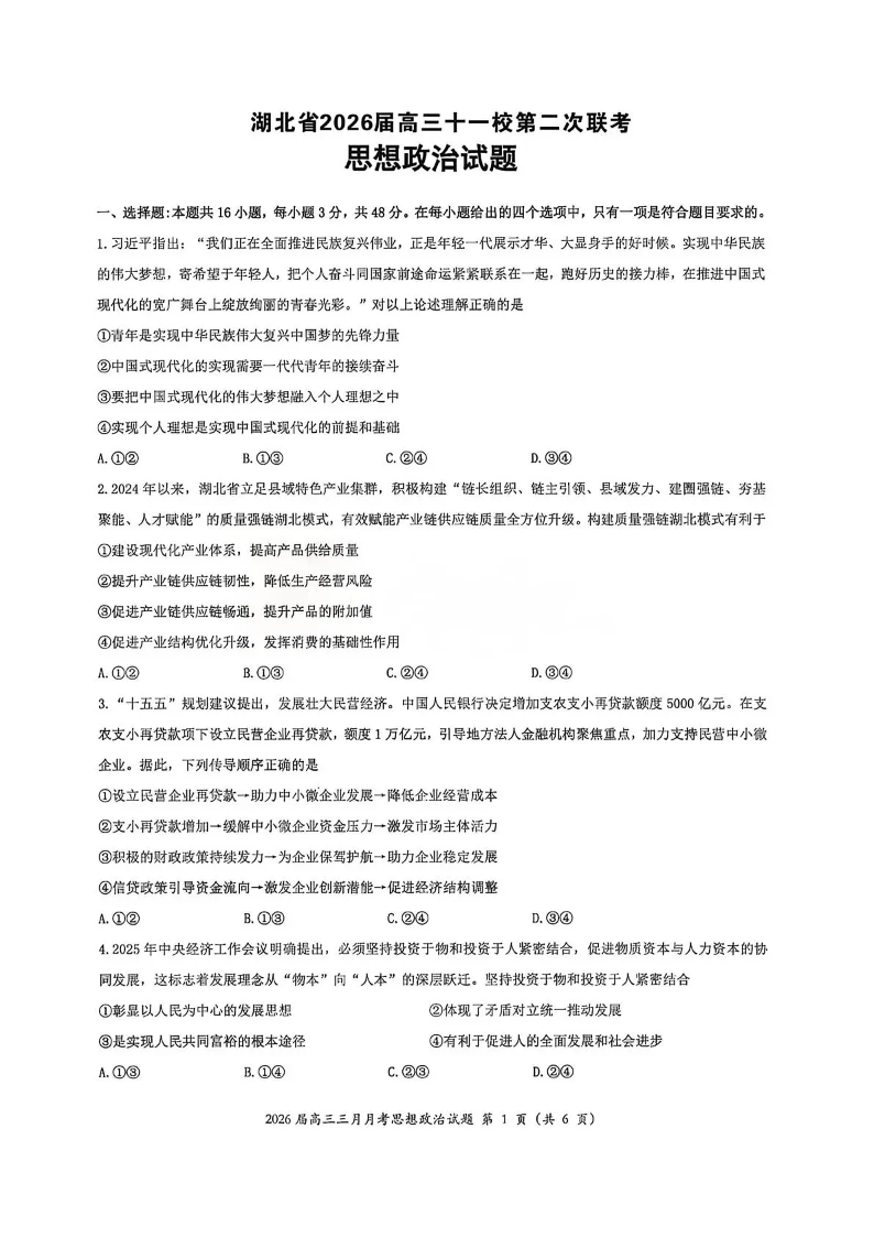 湖北省2026届高三十一校第二次联考 政治.pdf