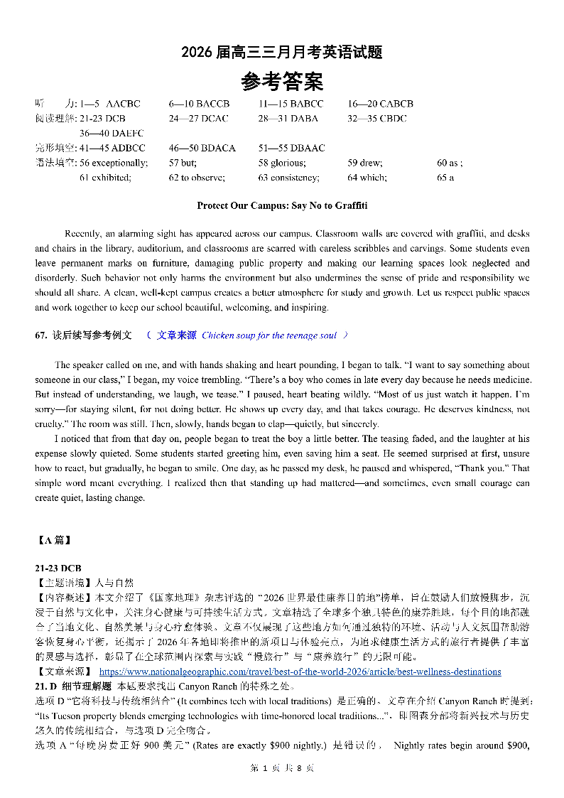湖北省2026届高三十一校第二次联考 英语答案.pdf