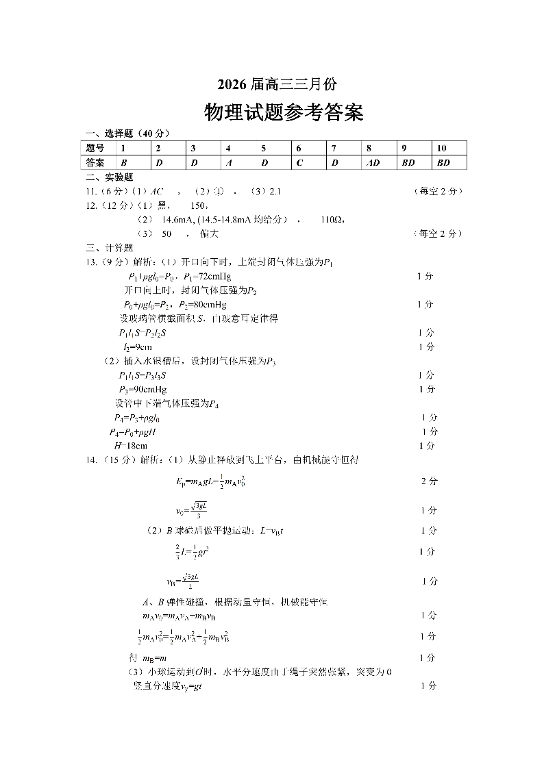 湖北省2026届高三十一校第二次联考 物理答案.pdf