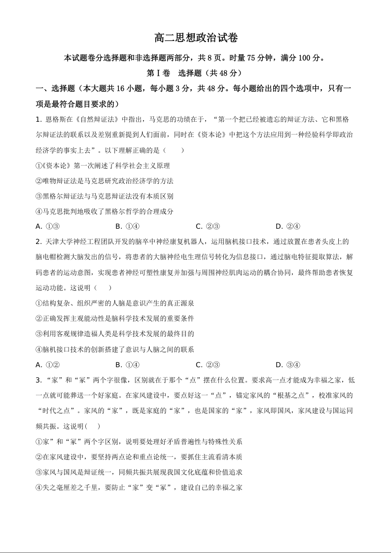湖南省长沙市长郡中学2025-2026学年高二下学期3月阶段检测 政治.docx