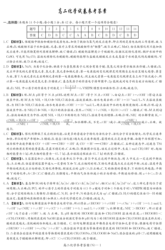 湖南省长沙市长郡中学2025-2026学年高二下学期3月阶段检测 化学答案.pdf