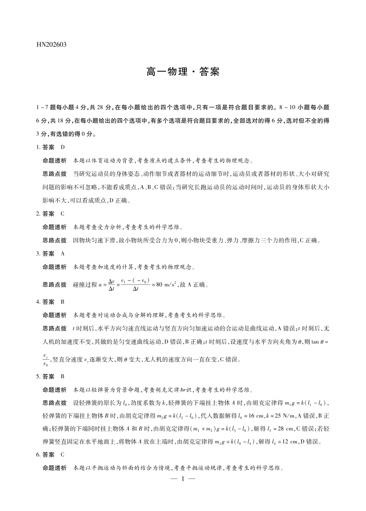 河南天一大联考2026年高一年级下学期3月大联考 物理答案.pdf