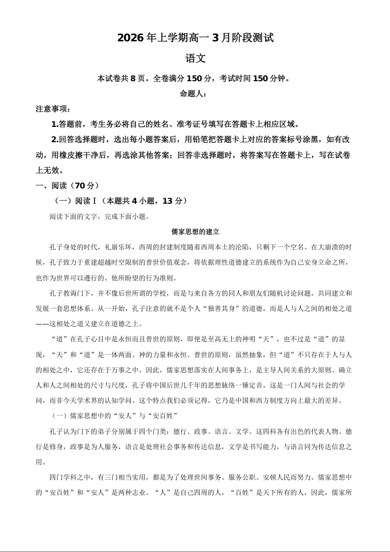 湖南省长沙市明德中学2025-2026学年高一下学期3月月考 语文答案.docx