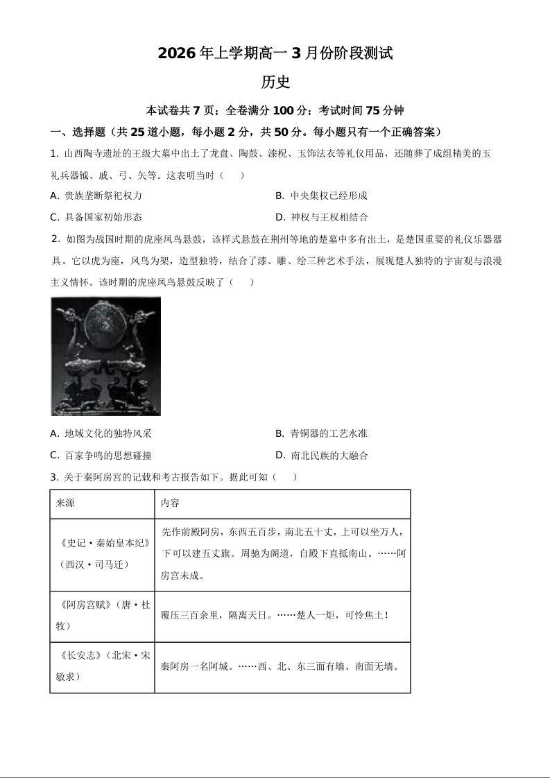 湖南省长沙市明德中学2025-2026学年高一下学期3月月考 历史.docx