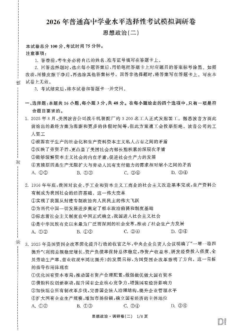 辽宁省衡水金卷2026年普通高等学校招生全国统一考试模拟调研卷(二)政治.pdf