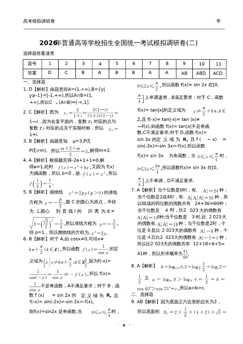 辽宁省衡水金卷2026年普通高等学校招生全国统一考试模拟调研卷(二)数学答案.pdf