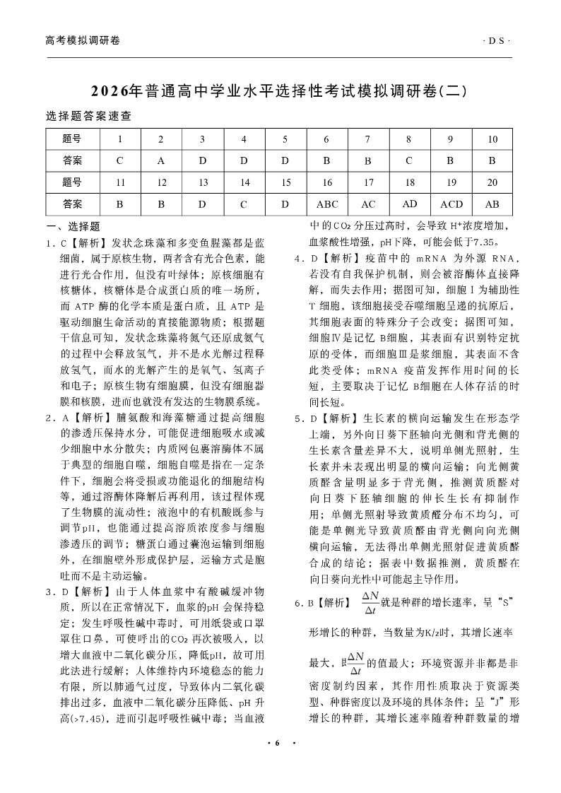 辽宁省衡水金卷2026年普通高等学校招生全国统一考试模拟调研卷(二)生物答案.pdf
