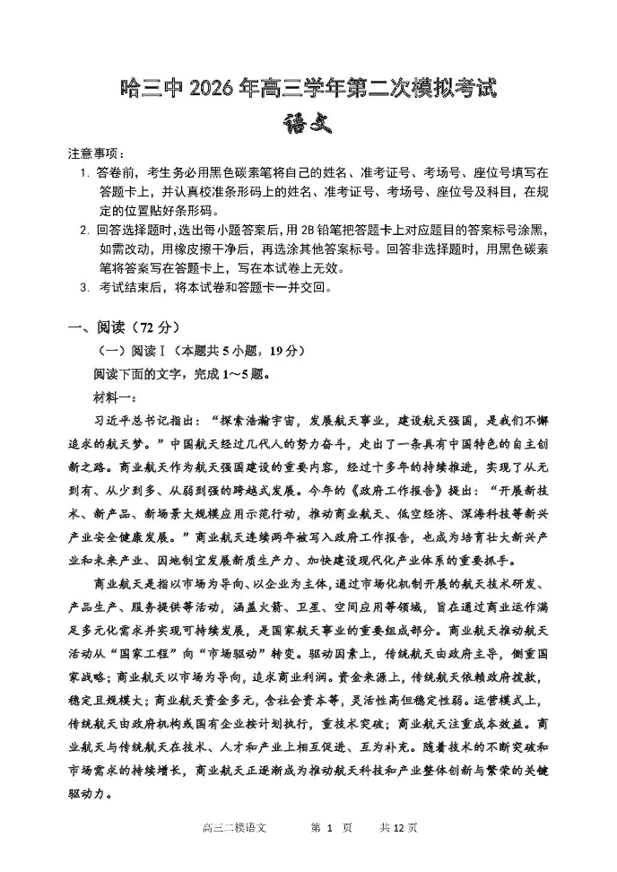 哈三中2026年高三学年第二次模拟考试 语文.pdf