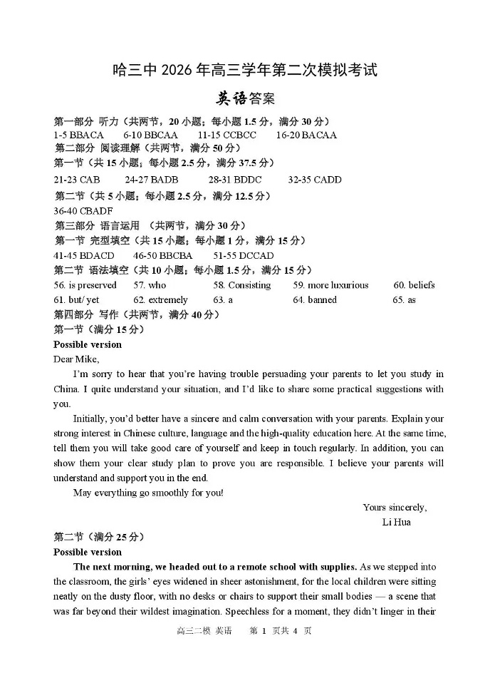 哈三中2026年高三学年第二次模拟考试 英语答案.pdf
