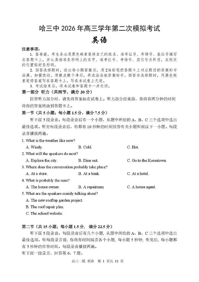 哈三中2026年高三学年第二次模拟考试 英语.pdf