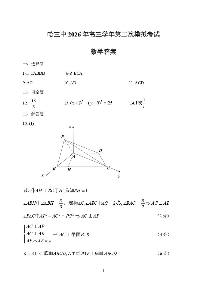 哈三中2026年高三学年第二次模拟考试 数学答案.pdf