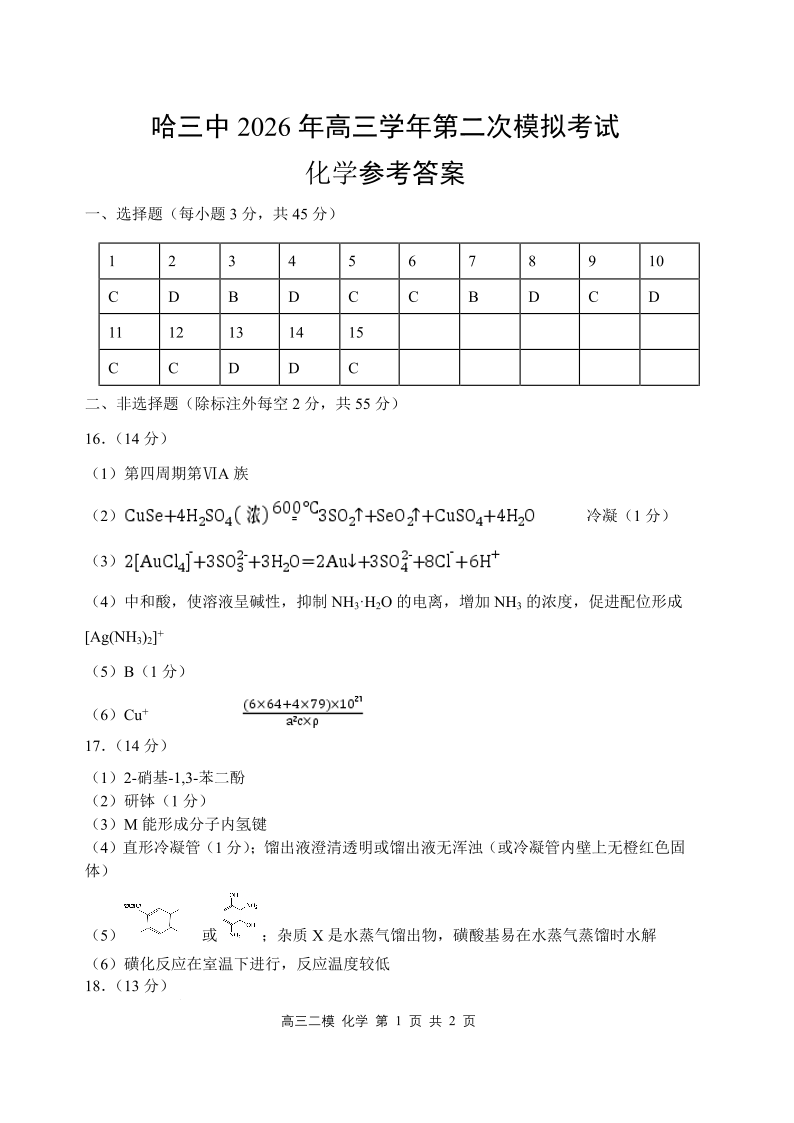 哈三中2026年高三学年第二次模拟考试 化学答案.pdf