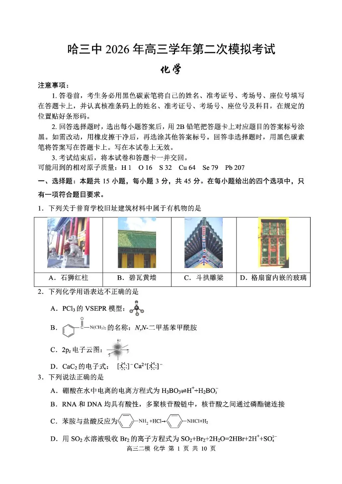 哈三中2026年高三学年第二次模拟考试 化学.pdf