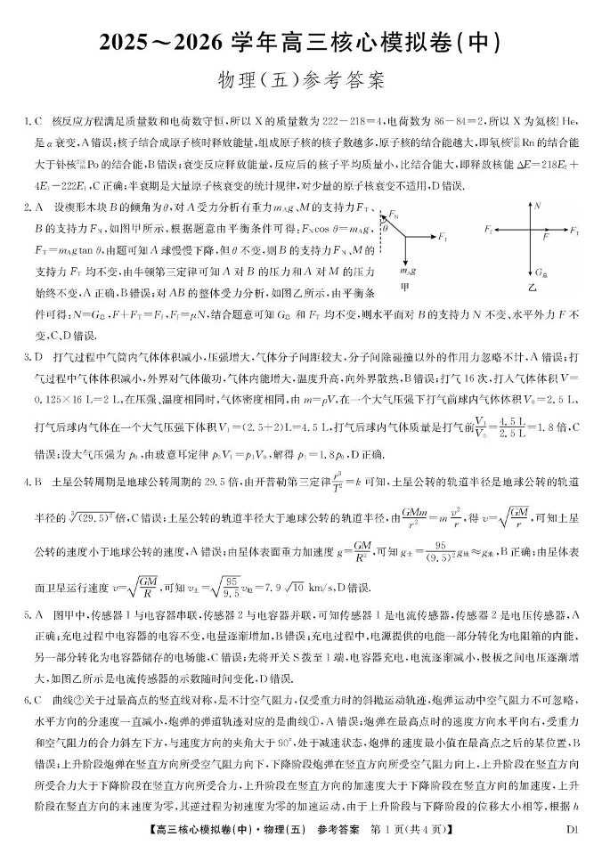 2025~2026学年高三核心模拟卷(五)物理答案.pdf