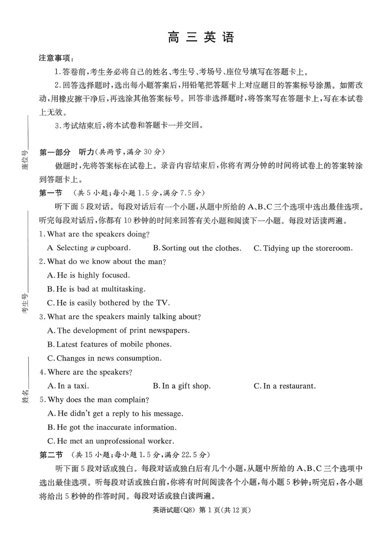 湖南省长沙市一中2026届高三年级月考试卷(八)英语试题(含答案).pdf