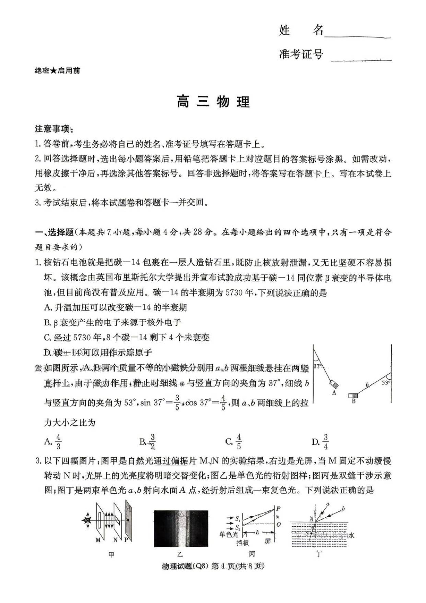 湖南省长沙市一中2026届高三年级月考试卷(八)物理试题(含答案).pdf