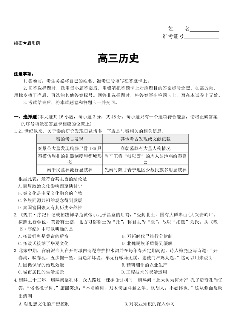 湖南省长沙市一中2026届高三年级月考试卷(八)历史试题(含答案).pdf