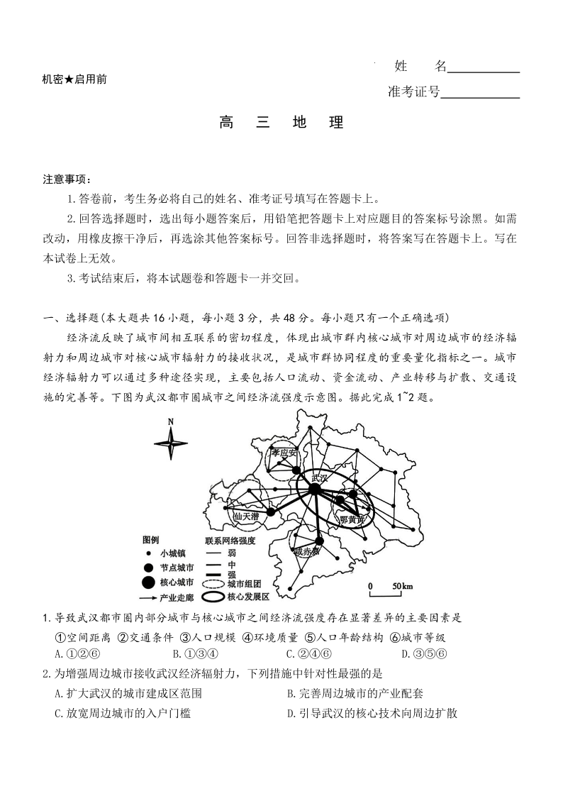 湖南省长沙市一中2026届高三年级月考试卷(八)地理试题(含答案).pdf