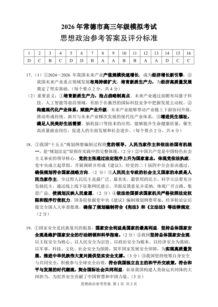 湖南省常德市2026年高三年级3月模拟考试 政治答案.pdf