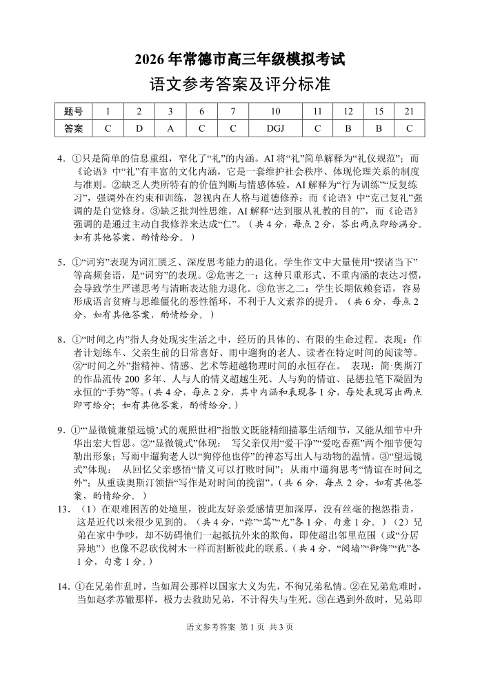 湖南省常德市2026年高三年级3月模拟考试 语文答案.pdf