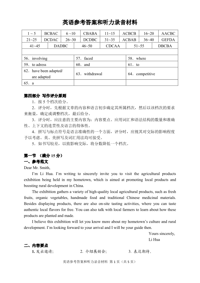 湖南省常德市2026年高三年级3月模拟考试 英语答案.pdf