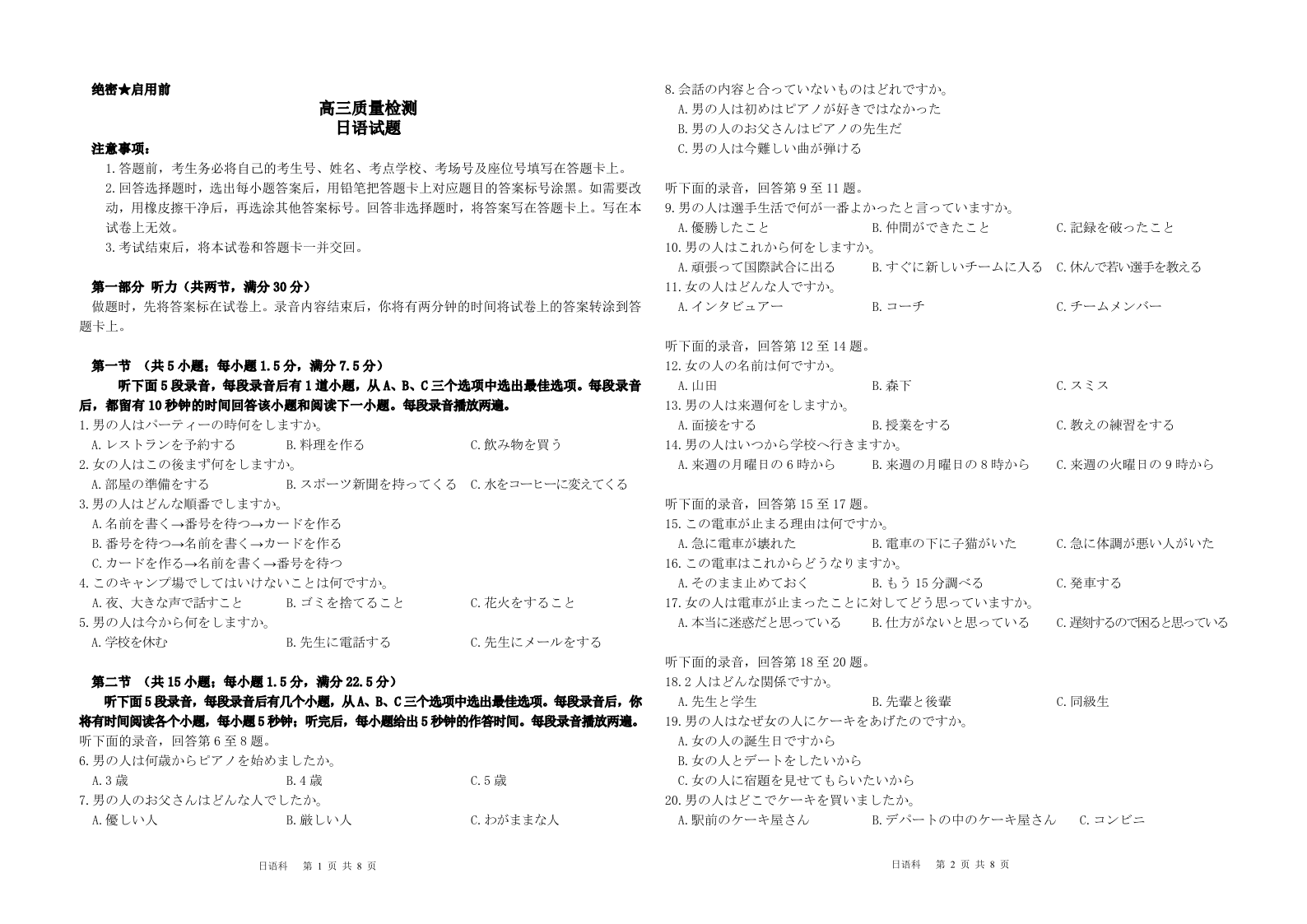 天壹名校联盟2026届高三3月质量检测 日语.pdf