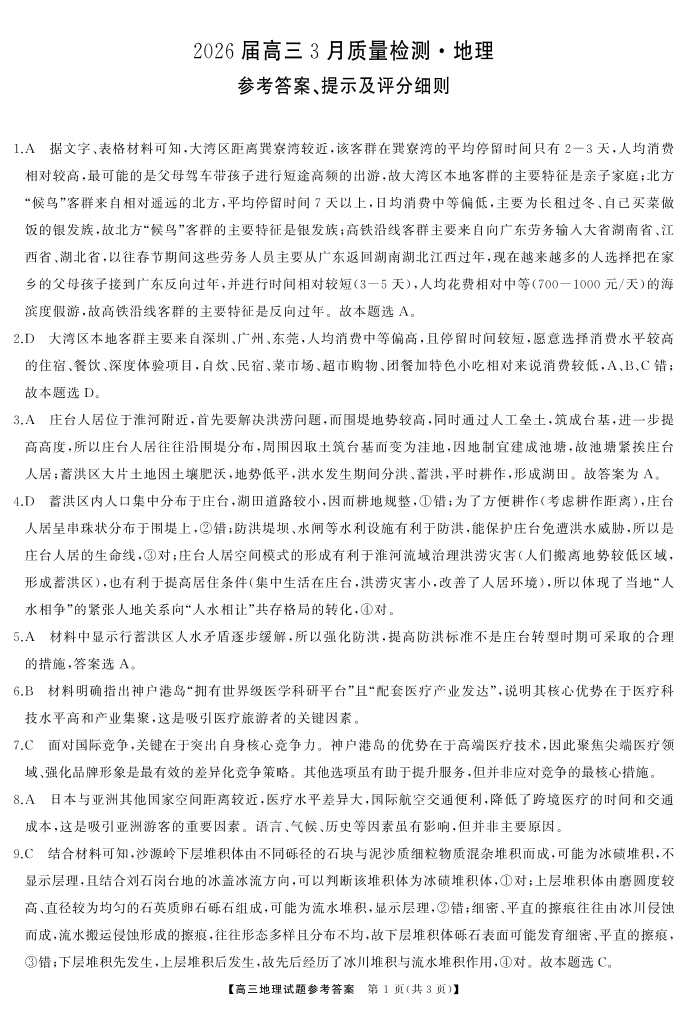 天壹名校联盟2026届高三3月质量检测 地理答案.pdf