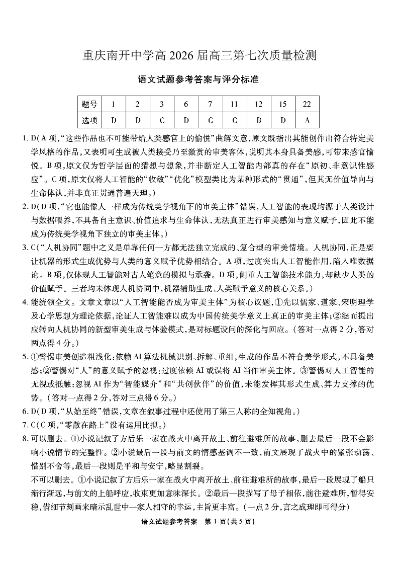 重庆市南开中学高2026届高三第七次质量检测 语文答案.pdf