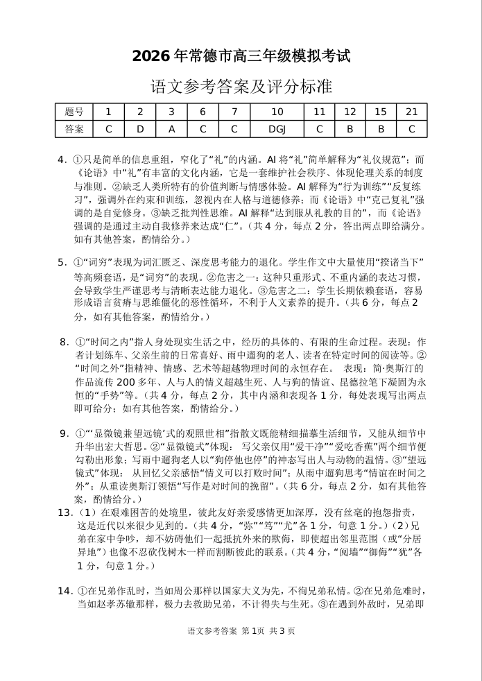 湖南省常德市2026年高三年级3月模拟考试 语文答案.doc