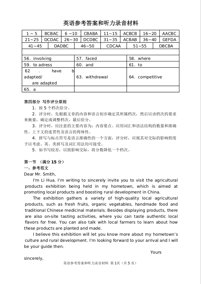 湖南省常德市2026年高三年级3月模拟考试 英语答案.doc