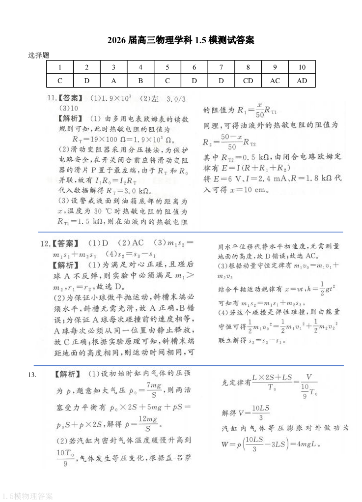 黑龙江省双鸭山市第一中学2026届高三下学期3月模拟考试 物理答案.pdf