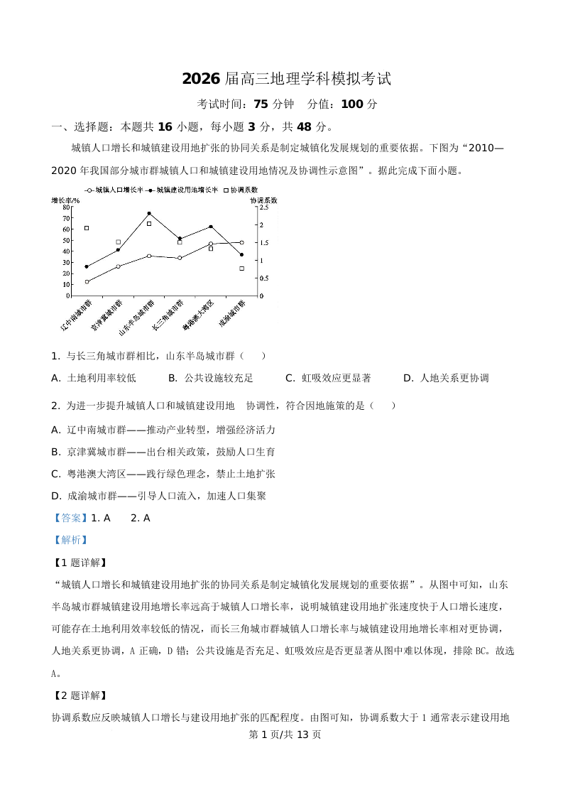 黑龙江省双鸭山市第一中学2026届高三下学期3月模拟考试 地理答案.docx