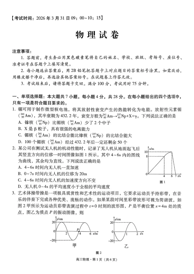 昭通市2025-2026学年高三下学期3月统一测试 物理.pdf