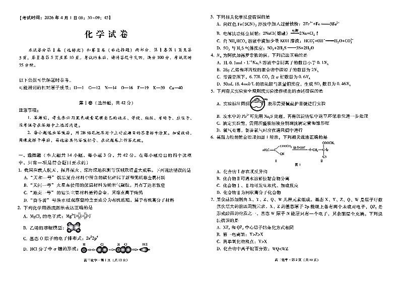 昭通市2025-2026学年高三下学期3月统一测试 化学.pdf