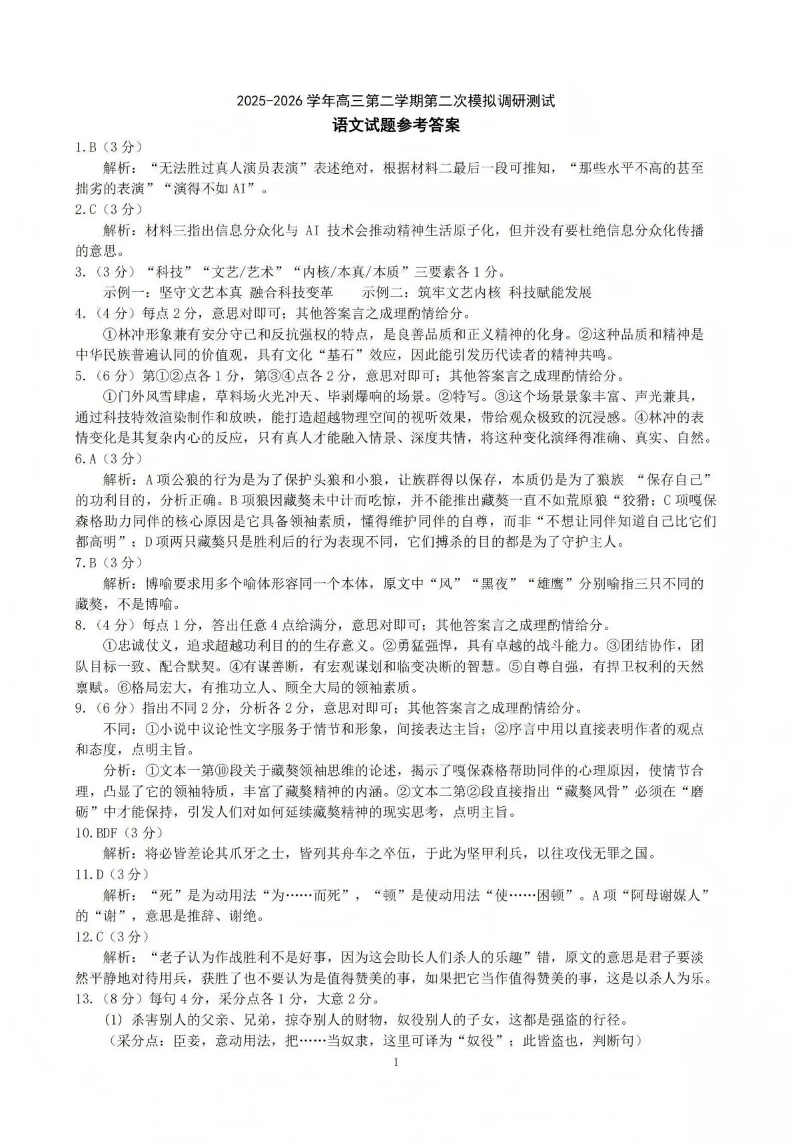 吕梁市2025-2026学年高三第二次模拟调研测试 语文答案.pdf
