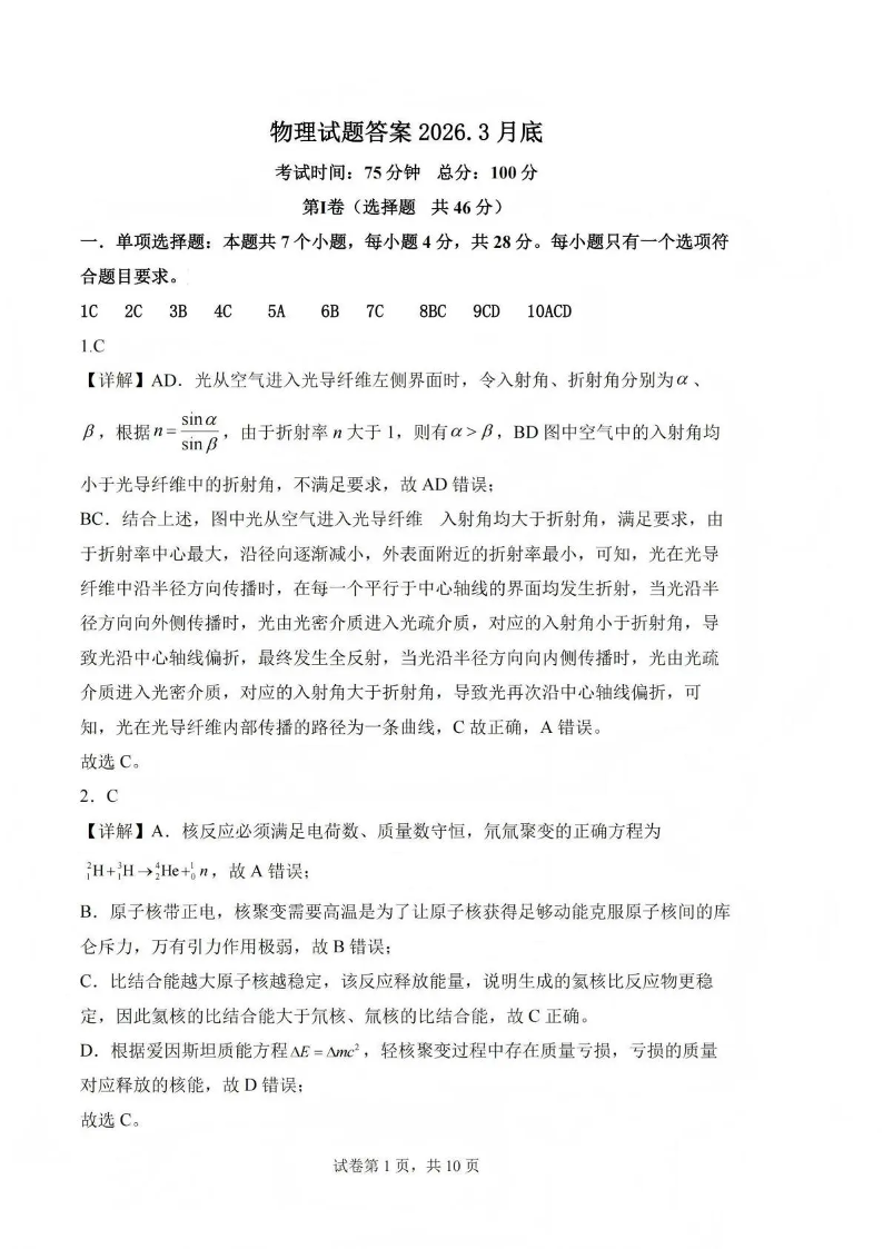 吕梁市2025-2026学年高三第二次模拟调研测试 物理答案.pdf