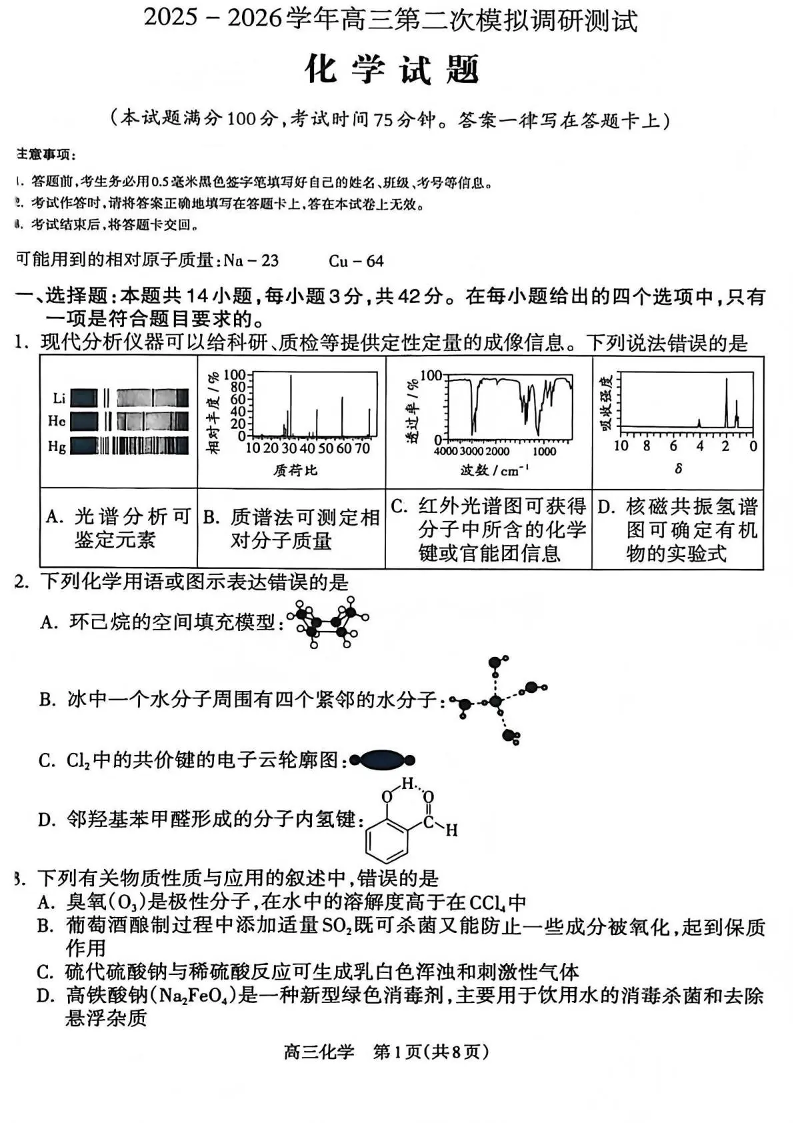 吕梁市2025-2026学年高三第二次模拟调研测试 化学.pdf