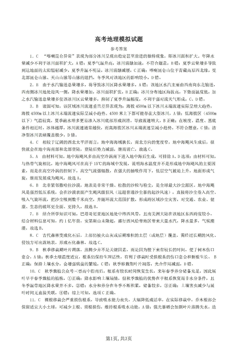 吕梁市2025-2026学年高三第二次模拟调研测试 地理答案.pdf