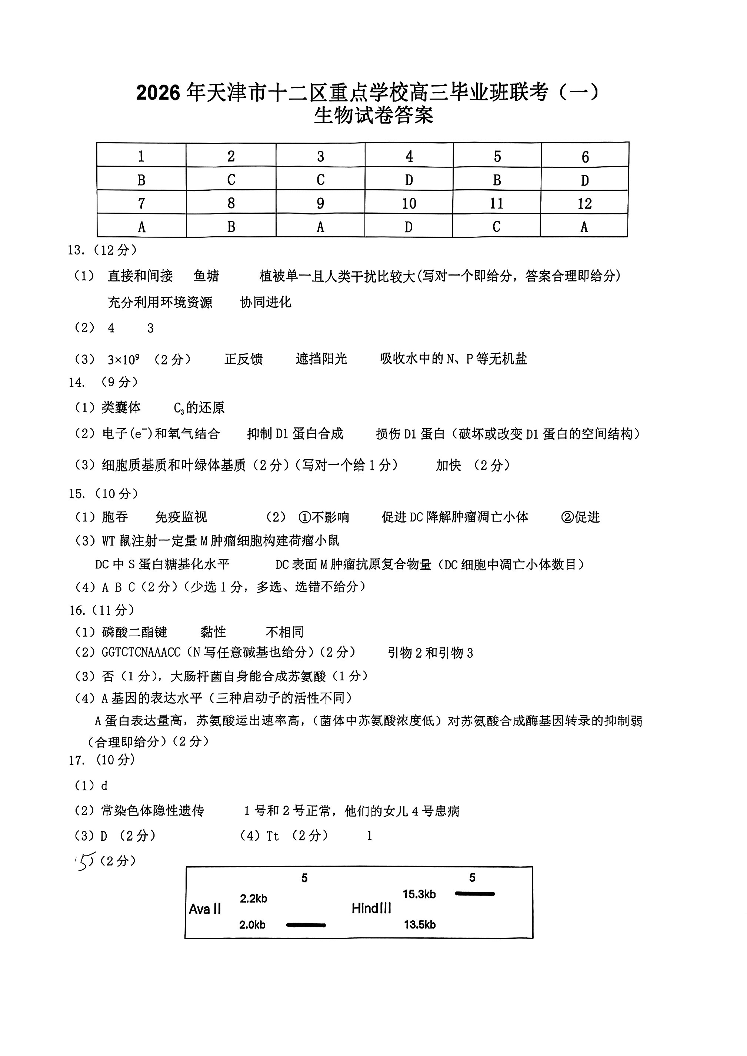 12校联考2026高三一模 生物答案.pdf