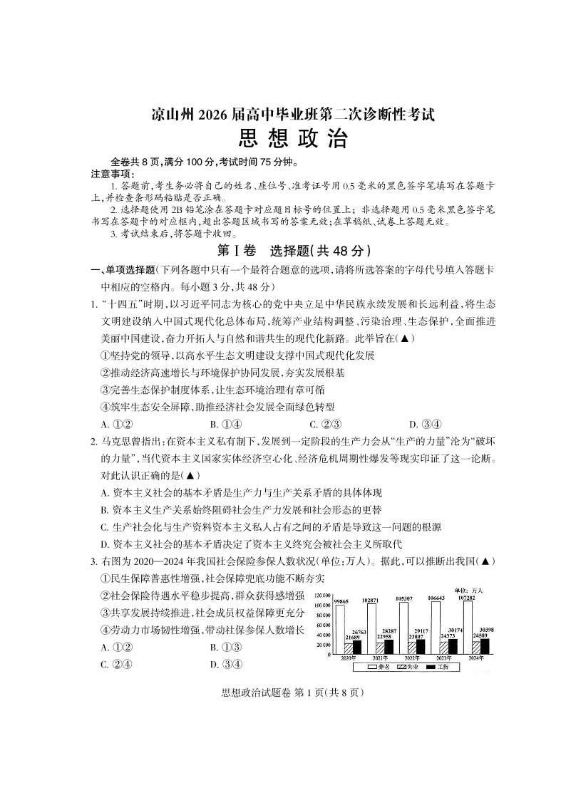 凉山州2026届高中毕业班第二次诊断性考试 政治.pdf
