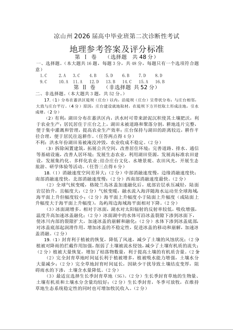 凉山州2026届高中毕业班第二次诊断性考试 地理答案.docx