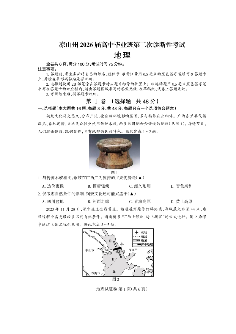 凉山州2026届高中毕业班第二次诊断性考试 地理.pdf