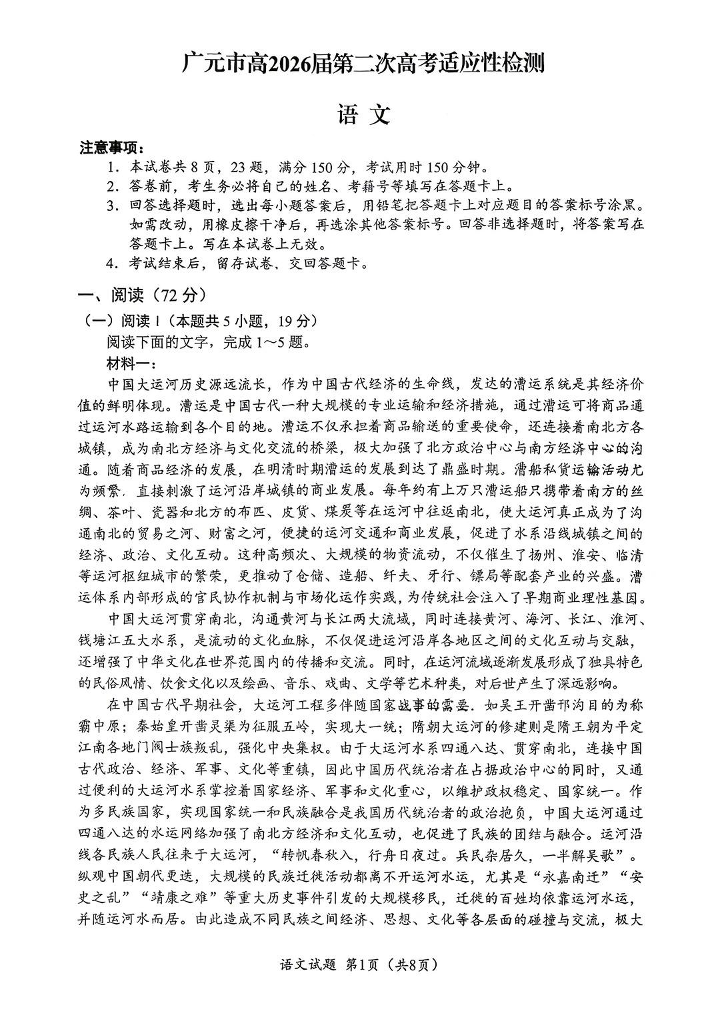 广元市高2026届第二次高考适应性检测 语文.pdf