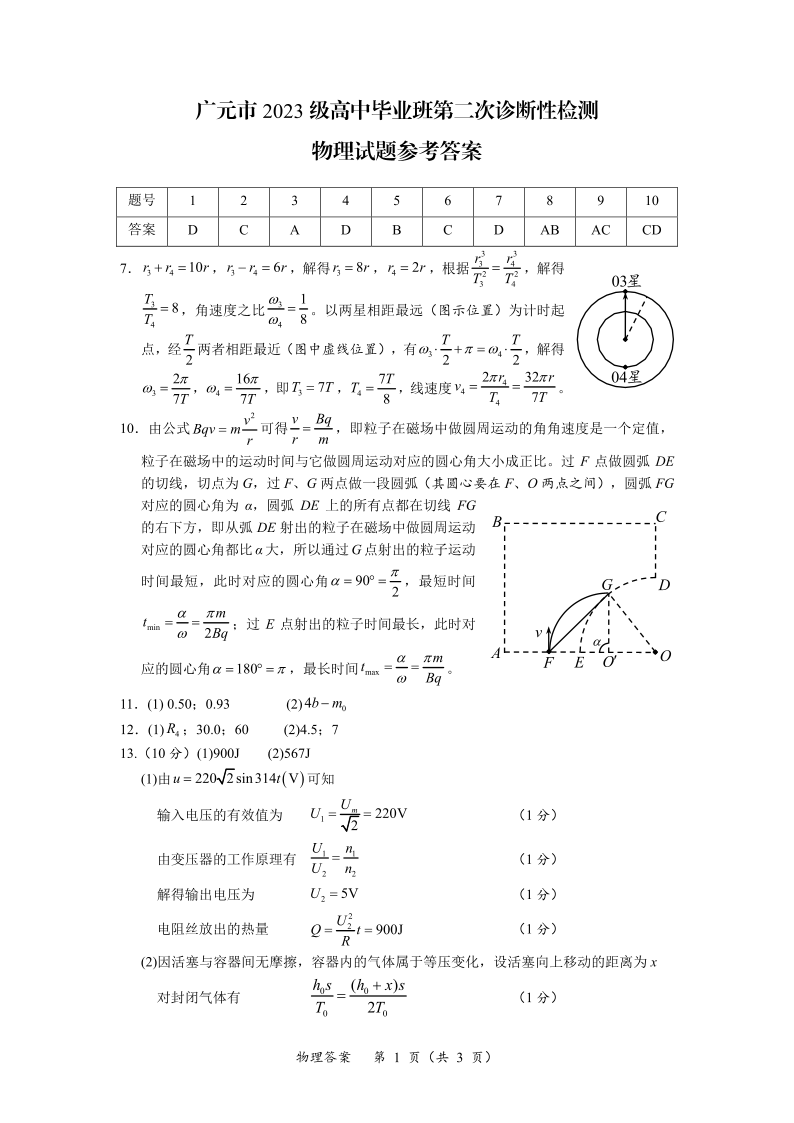 广元市高2026届第二次高考适应性检测 物理答案.pdf