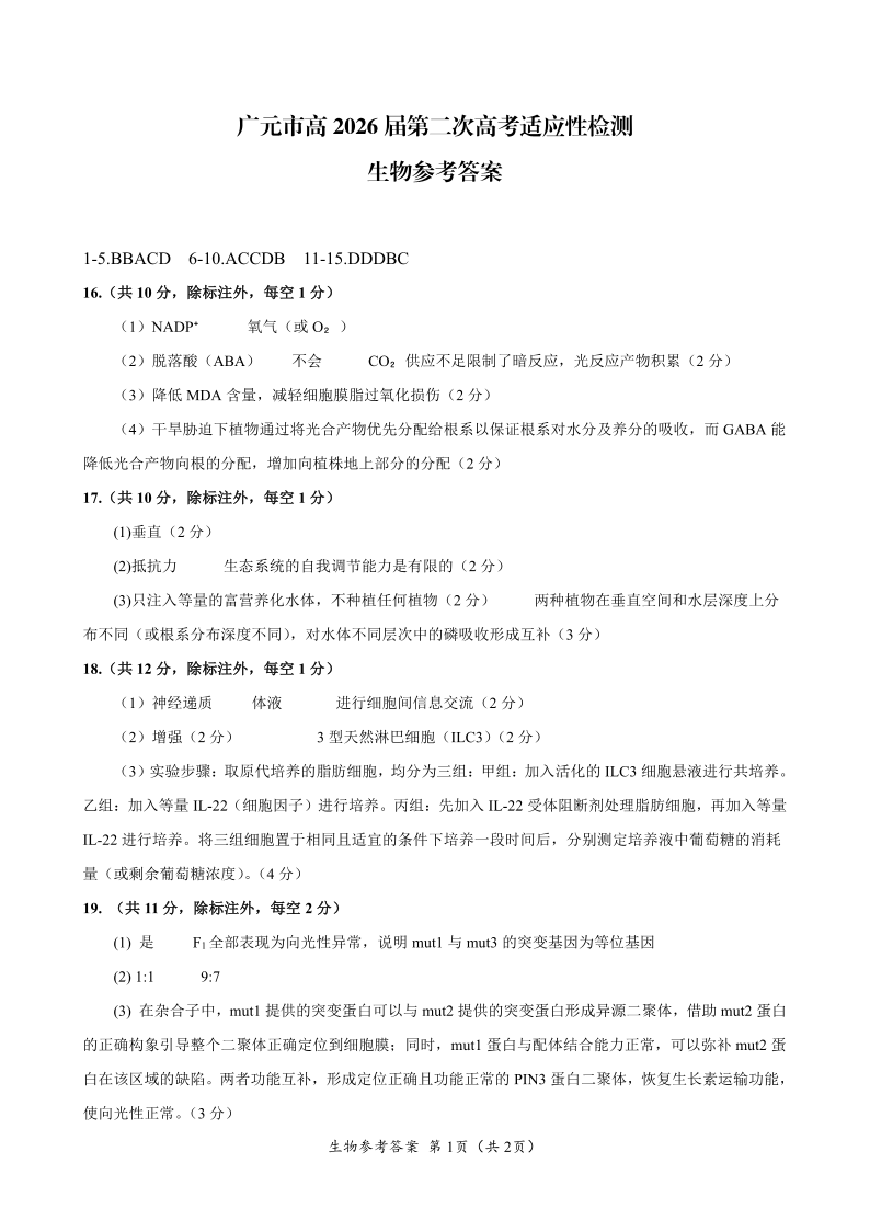 广元市高2026届第二次高考适应性检测 生物答案.pdf
