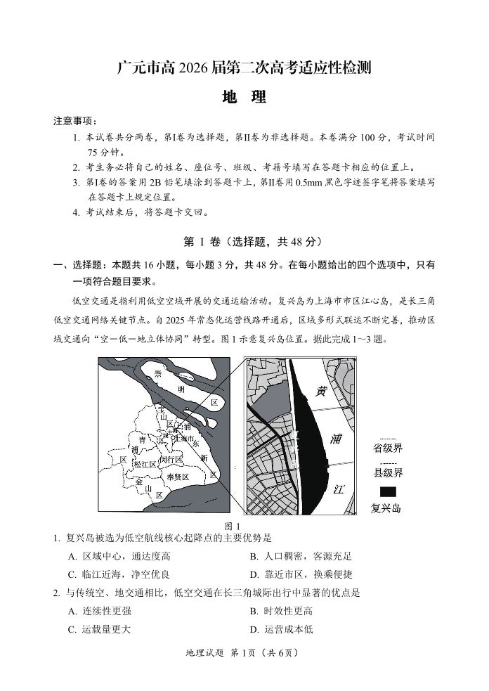 广元市高2026届第二次高考适应性检测 地理.pdf