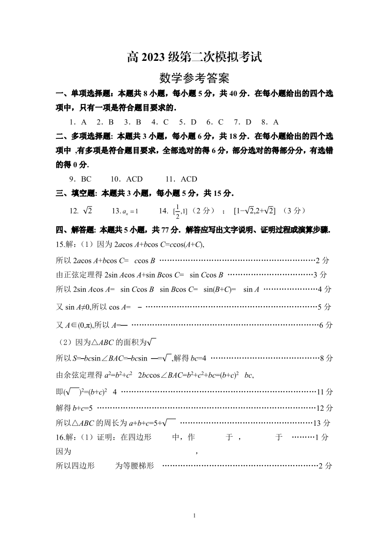 广安市高2023级第二次模拟考试 数学答案.pdf