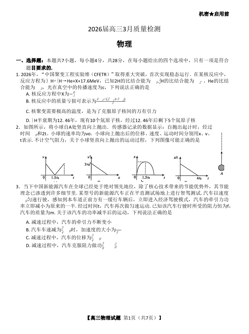 湖南省湘西州、湘潭市2026届高三3月质量检测 物理.pdf